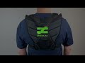 Connect the back harness strap to harness using hook & loop attachment. Adjust harness buckles to secure shoulder pads and back pad system