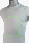 PROTECTIVE PADS MUST BE WORN IN THE UNEQUAL CC HART® BASE-LAYER SHIRT TO ADHERE TO STANDARDS. FOR MAXIMUM PERFORMANCE, FITTING INSTRUCTIONS MUST BE FOLLOWED. THIS EQUIPMENT IS DESIGNED TO HELP REDUCE THE RISK OF INJURY ONLY FOR THE SPECIFIC BODY AREA WHICH IT COVERS. THIS EQUIPMENT DOES NOT GUARANTEE THAT AREA WILL BE PROTECTED FROM ALL INJURIES. ANY MODIFICATION OF THIS ITEM IS FORBIDDEN. NO THORACIC OR CHEST PROTECTOR CAN PREVENT ALL CARDIAC OR OTHER INJURY. CATASTROPHIC INJURY AND DEATH MAY OCCUR TO THE WEARER DESPITE USING THIS PROTECTOR. THIS CHEST PROTECTOR CAN BE DAMAGED BY CONTACT WITH COMMON SUBSTANCES (FOR EXAMPLE, CERTAIN SOLVENTS, CLEANERS, ETC.). THIS DAMAGE MAY OR MAY NOT BE VISIBLE TO THE USER.